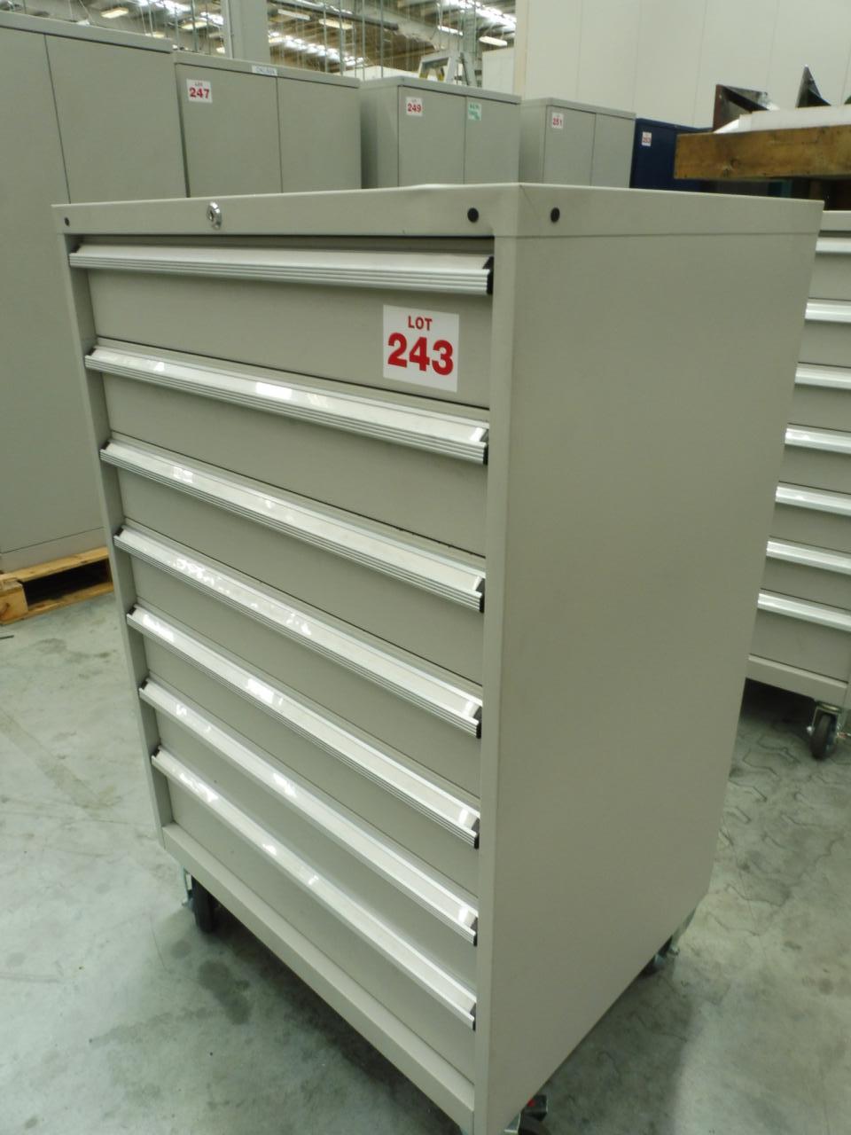 Mobile Tool Room Cabinet. 7 Draw. Dimensions-1360mm(h) x 890mm x 650mm (d).