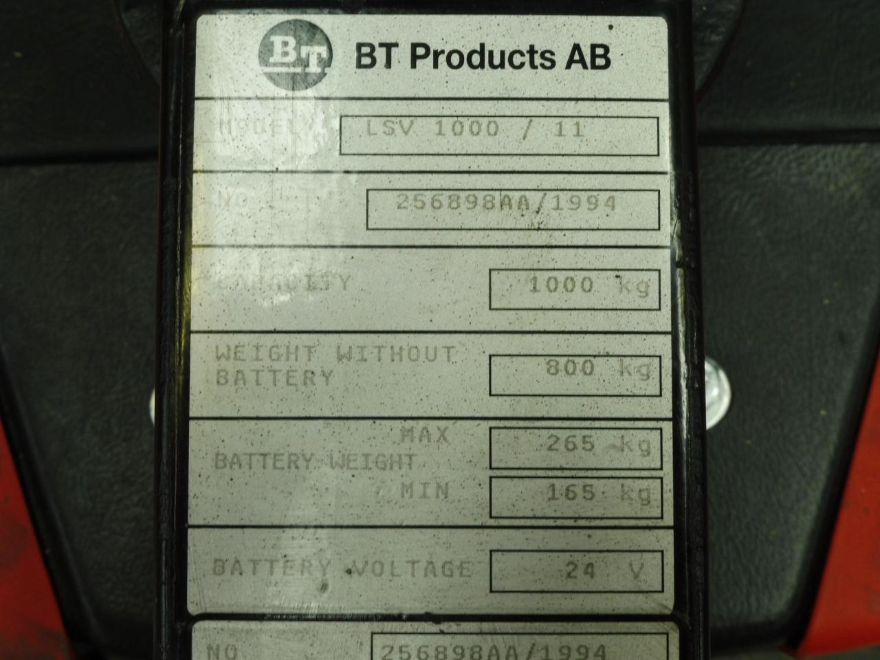BT- Electric Fork Lift and Battery Charger. ( PLEASE NOTE THE BATTERIES NEED REPLACEING ) Model-LSV 1000/11, Hours- 2635, Lift Height-3350mm, Lifting- 1000 kg. Serviced 10/20 next service 10/21.