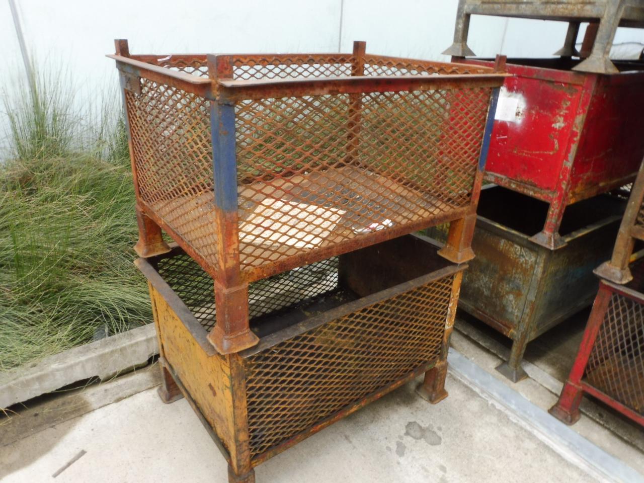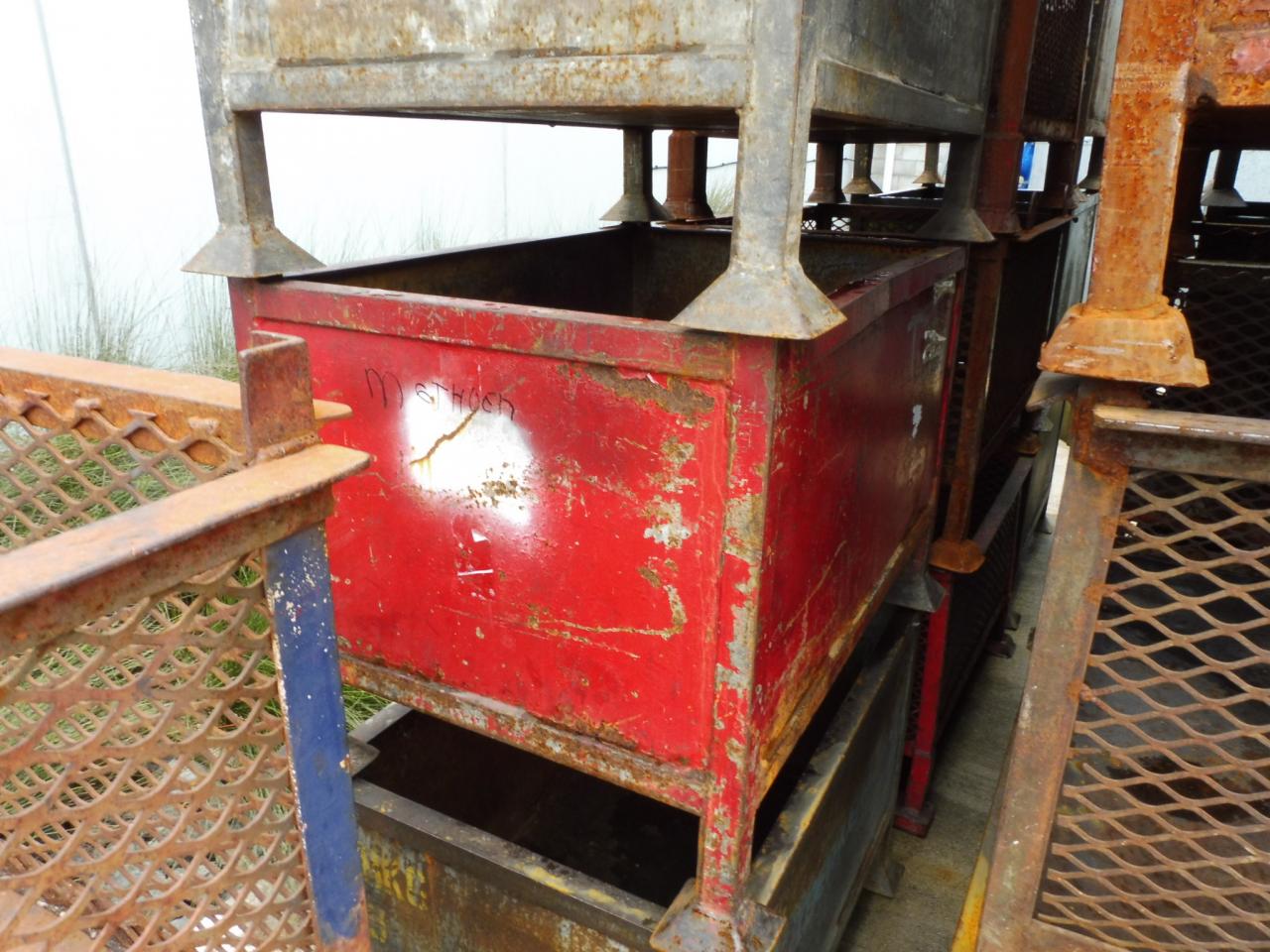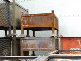 43 x Steel Stacking Bins. 39 x 1000mm x 754mm x 690mm(h). 4 x Shallower. Inside dimensions-945mm x 665mm x 460mm(d)
