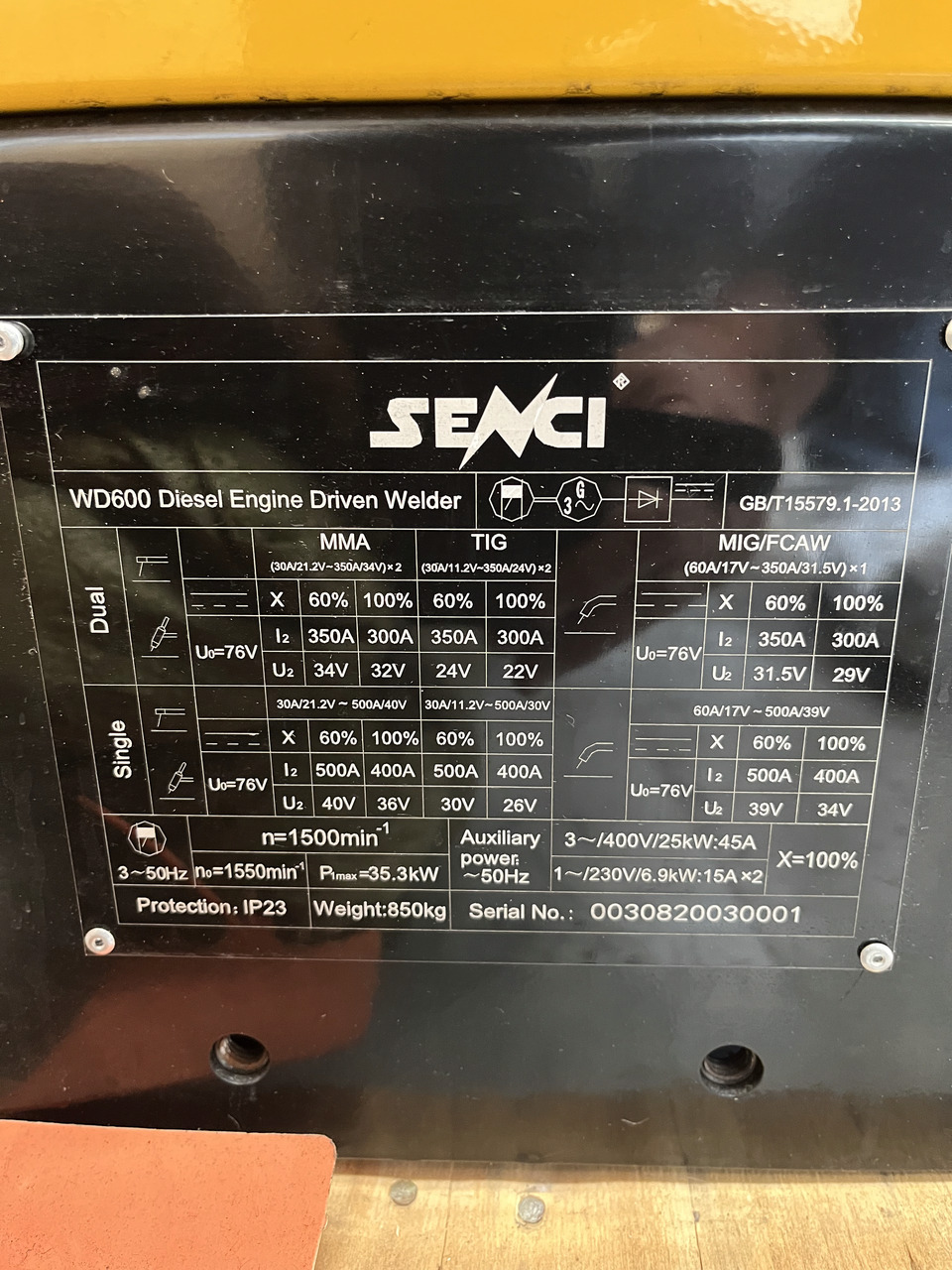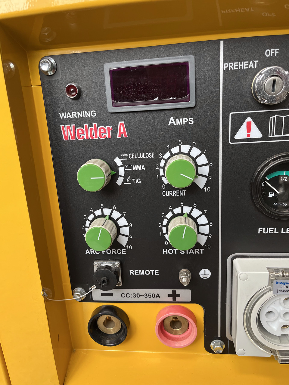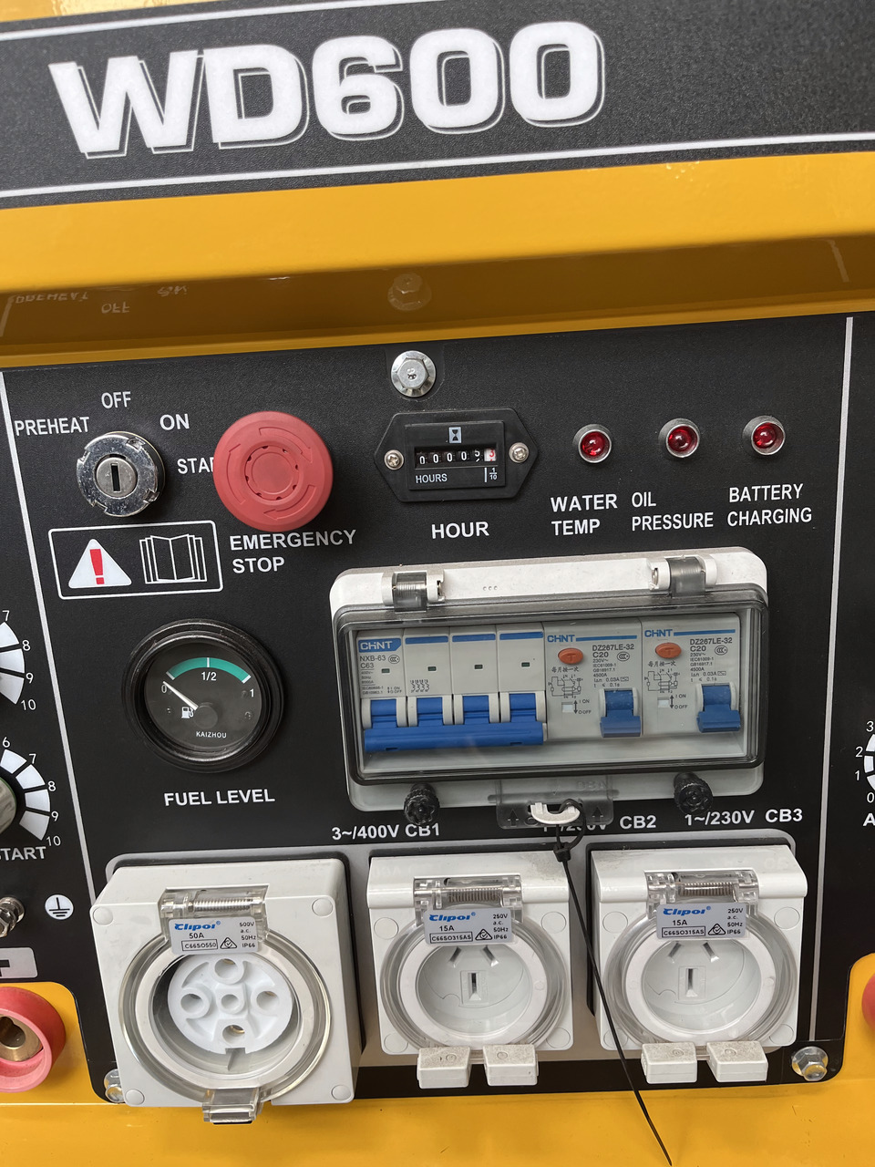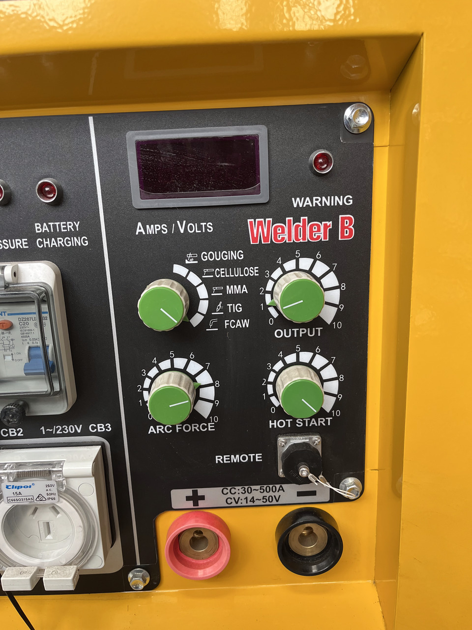 This Tri-Phase machine is fitted with EW35-50 large size welding pin outlets x 2, Power outlets 230v x 2, Three phase