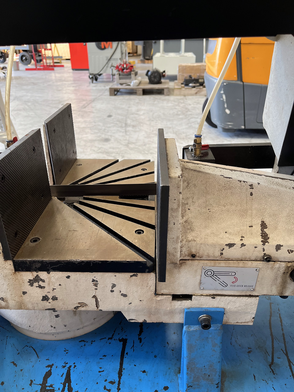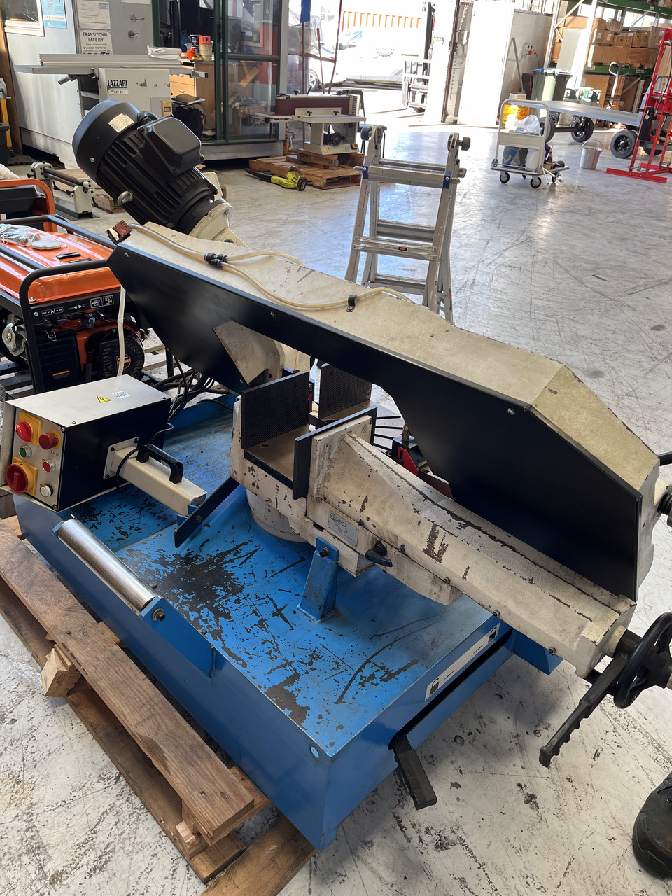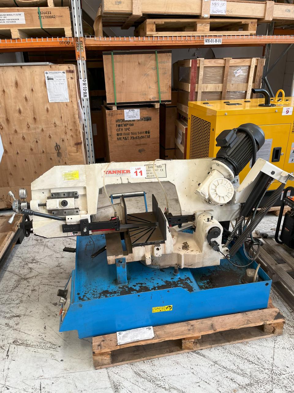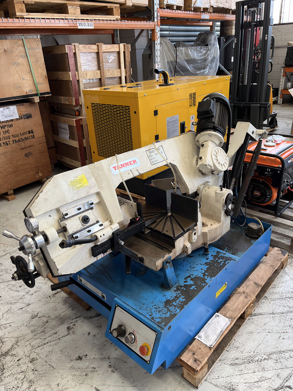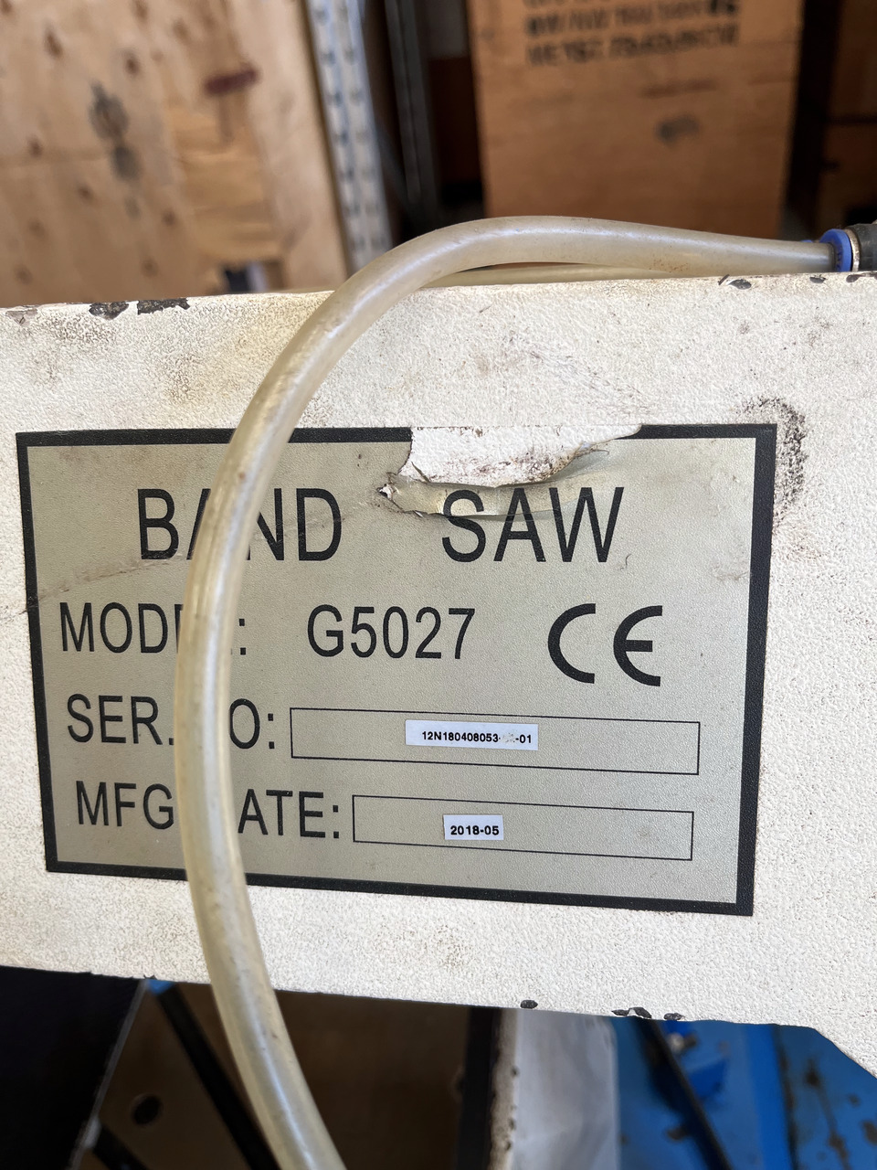 Bandsaw, Heavy Duty Semi-Automatic Dual Mitre Saw, Tanner, Model G5027, Year 2018, (Used, Vice is not clamping, needs attention)