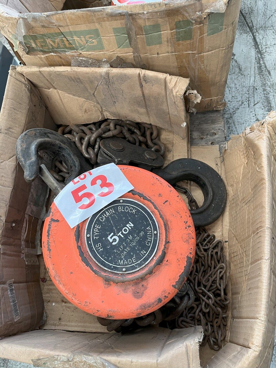 Lot #53 - CHAIN HOIST, HS TYPE, 5 TON, LIFT HEIGHT 3M ( USED )