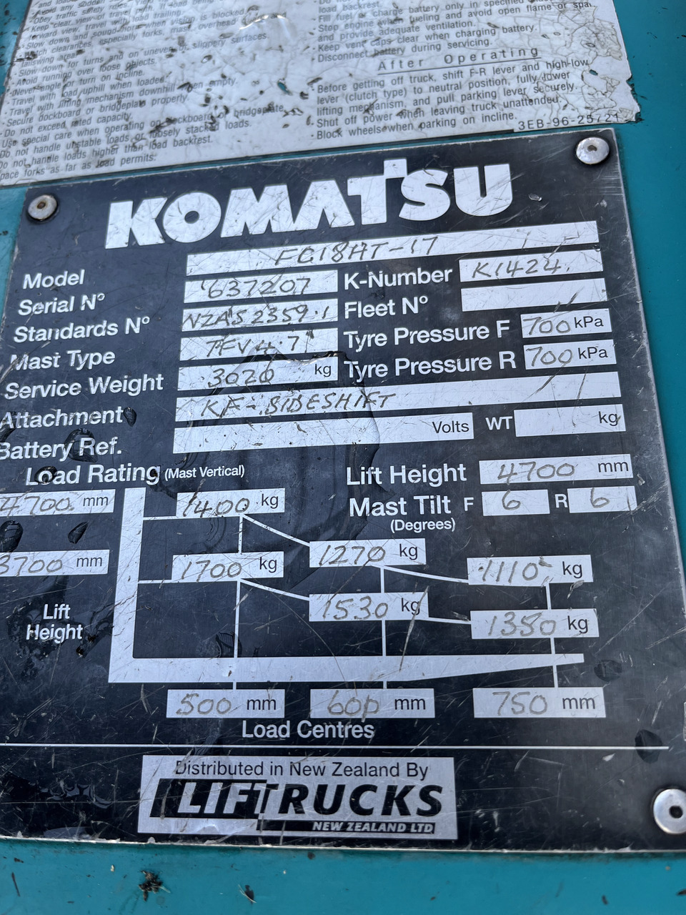 Lot #73 - KOMATSU 18 FORKLIFT (NON RUNNER). SEE PHOTOS FOR DETAILS
