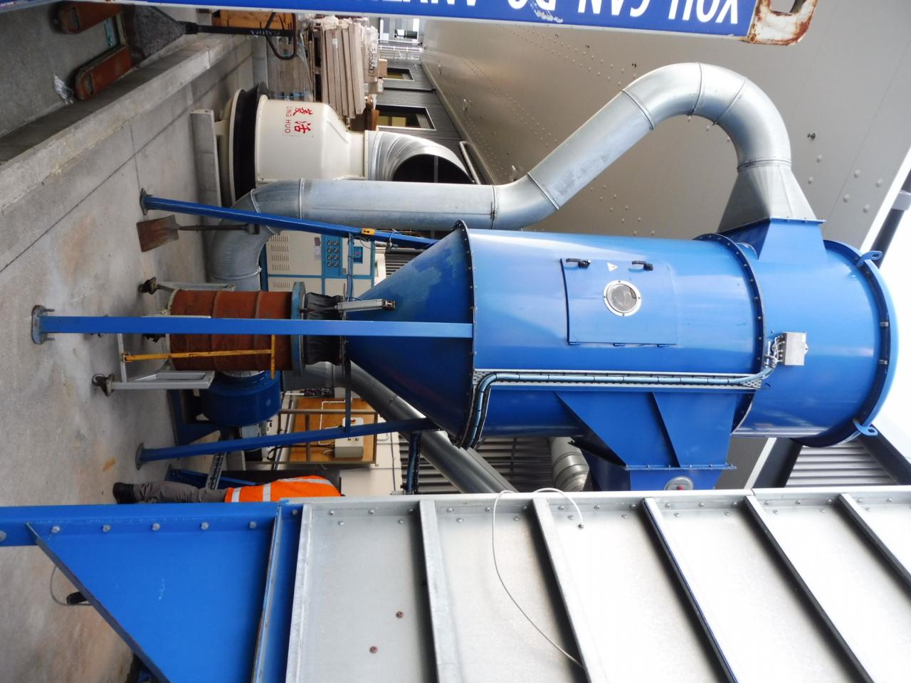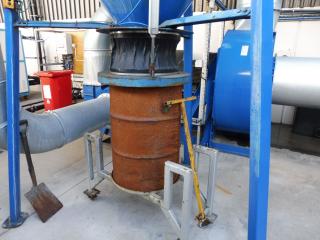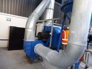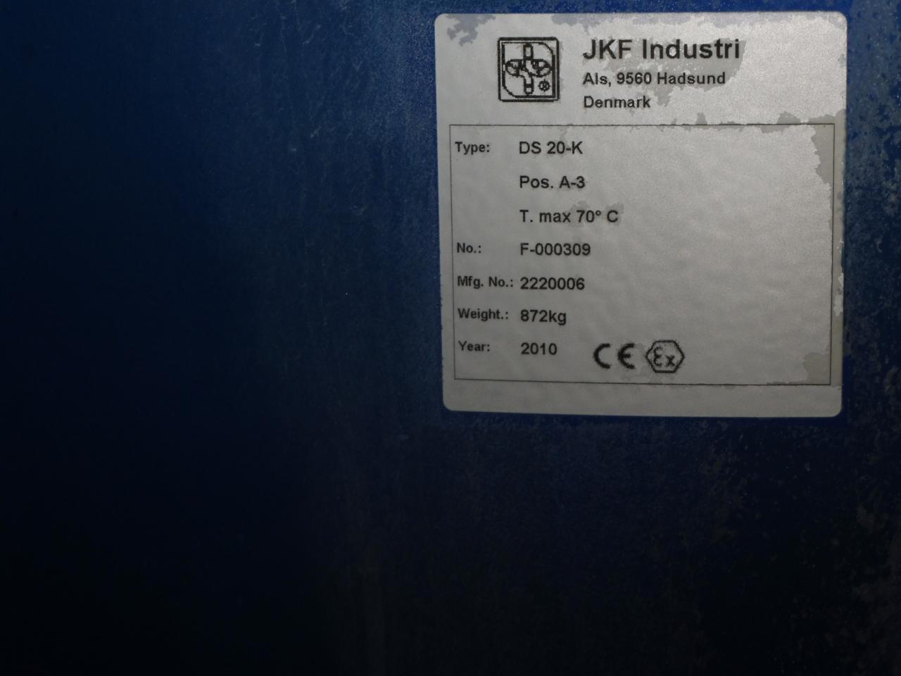 Dust Extraction System-JKF ,Type DS-20-K ; Year-2010. Conical bottom ; 5.5 metres high approx ; pos A-3 20 c/m cubed -1 ; T max -70 deg. Comes with control panel ; JKF 40 Fan -max 3500 min -1 ; 11 kw electric motor. With 400 mm external ducting from fan to baghouse. Has stack approx-9 metres. There is approx 35 metres of internal ducting. Please see photos for other information.