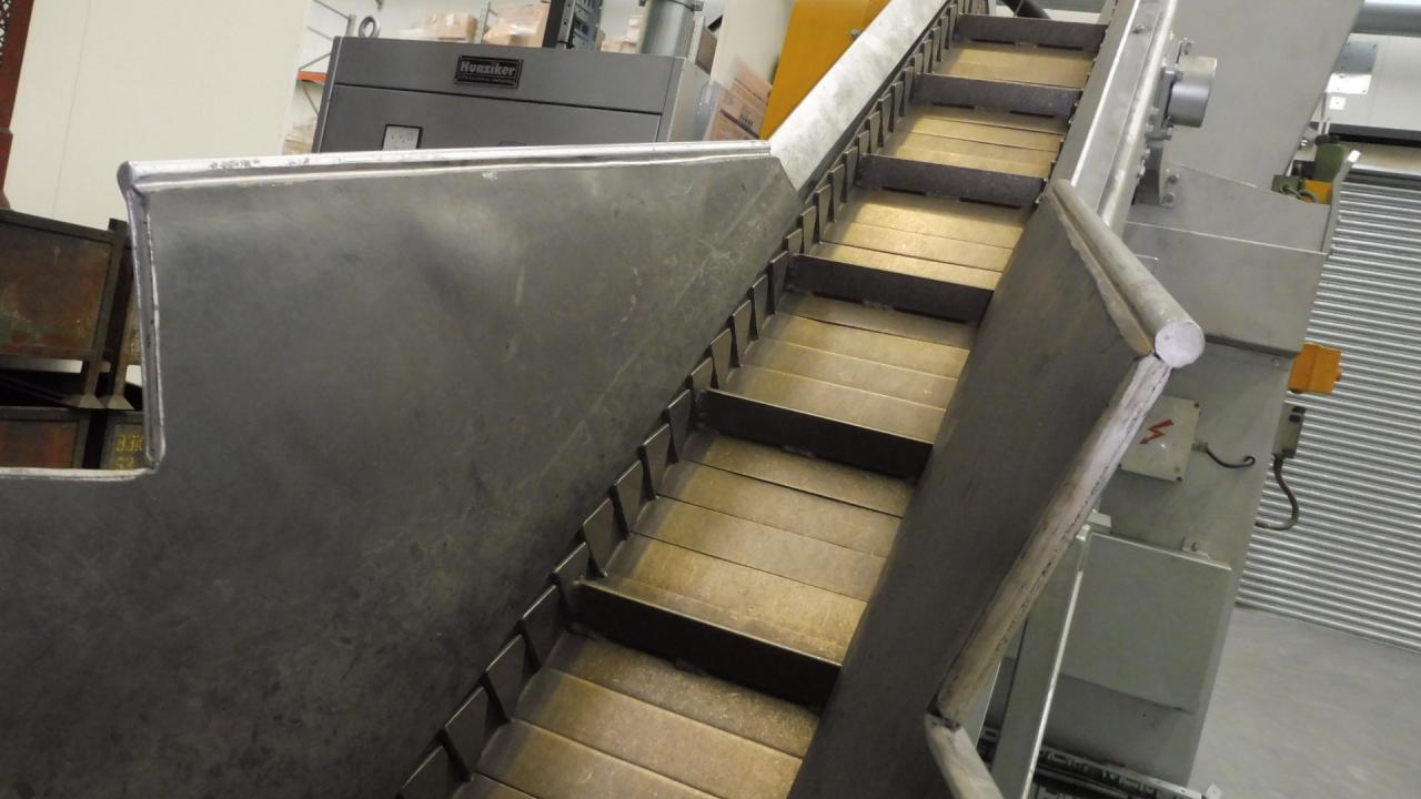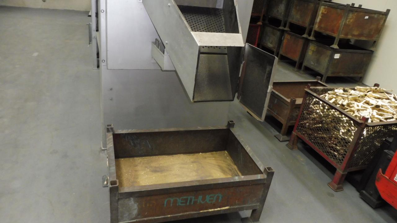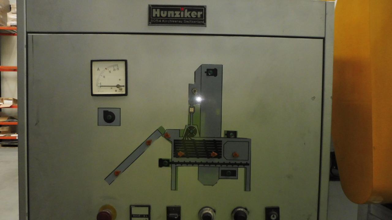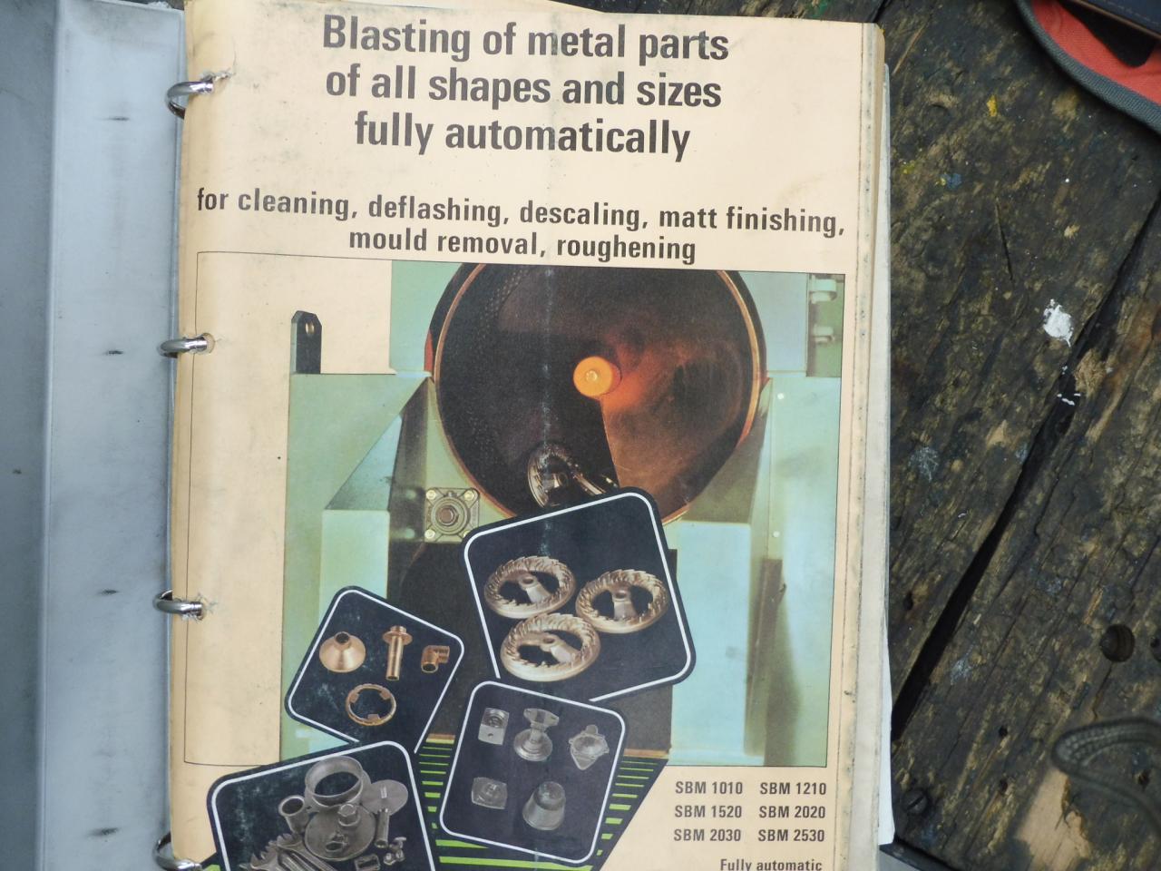 Hunziker Fully Automatic Through Feed Blasting Machine,Type SBM 1210. Complete with infeed product conveyor, 2200mm (l) x 2150mm (h) x 820 mm(w).Steel Belt width-245mm. Main Machine dimensions, 2300mm x 1200mm x 4100mm (h); output shute 700mm wide; control panel 1820mm x 420mm x 980mm (w); includes section of ducting from shot blast to main dust extration ducting.