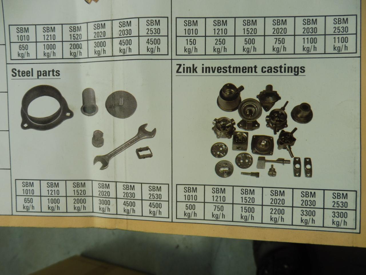 Production Rates: Hot standard Brass; 1000kg/hr; Aluminium investment castings 250 kg/hr; Steel parts 1000kg/hr; Zinc Castings 750 kg/hr.
