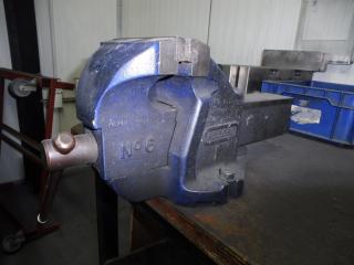 Industrial Work Table comes with Record No6 Vice. Dimensions: 2470mm x 1000mm x 900mm. Heavy Steel Frame with double ply top. Excludes contents on top of the bench.