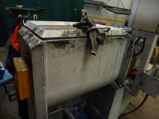 Foundry Core Sand Mixing Machine. Brand unknown. Ribbon type mixer. Mixing area 600mm x 400mm x 400mm (d).