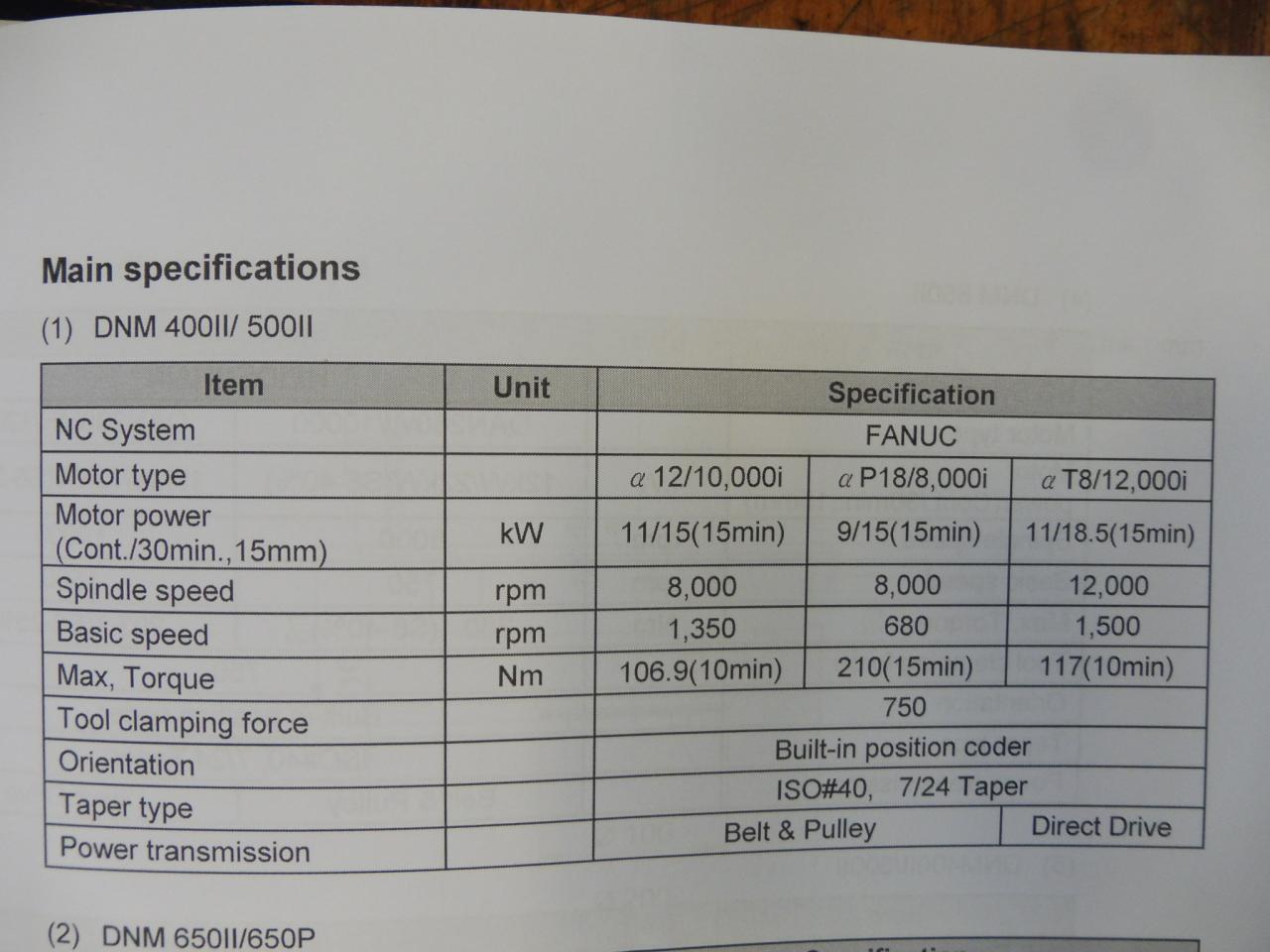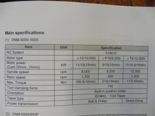 Motor Type - a12/10,000i..motor power-con 30min,15mm..Spindle speed - 8,000 rpm,basic speed - 1350rpm,Max torque - 106.9 nm, tool clamping-750, orientation built in position coder, taper type-Iso 40 7/24 taper.