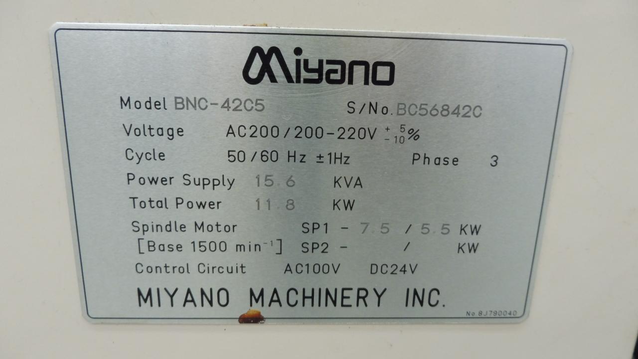 MIYANO BNC42 C5 CNC LATHE, complete with Fedek Bar Feeder & Chip Conveyor. Year 2008; 11.8kw, 3 phase; Power Supply 15.6 Kva.
