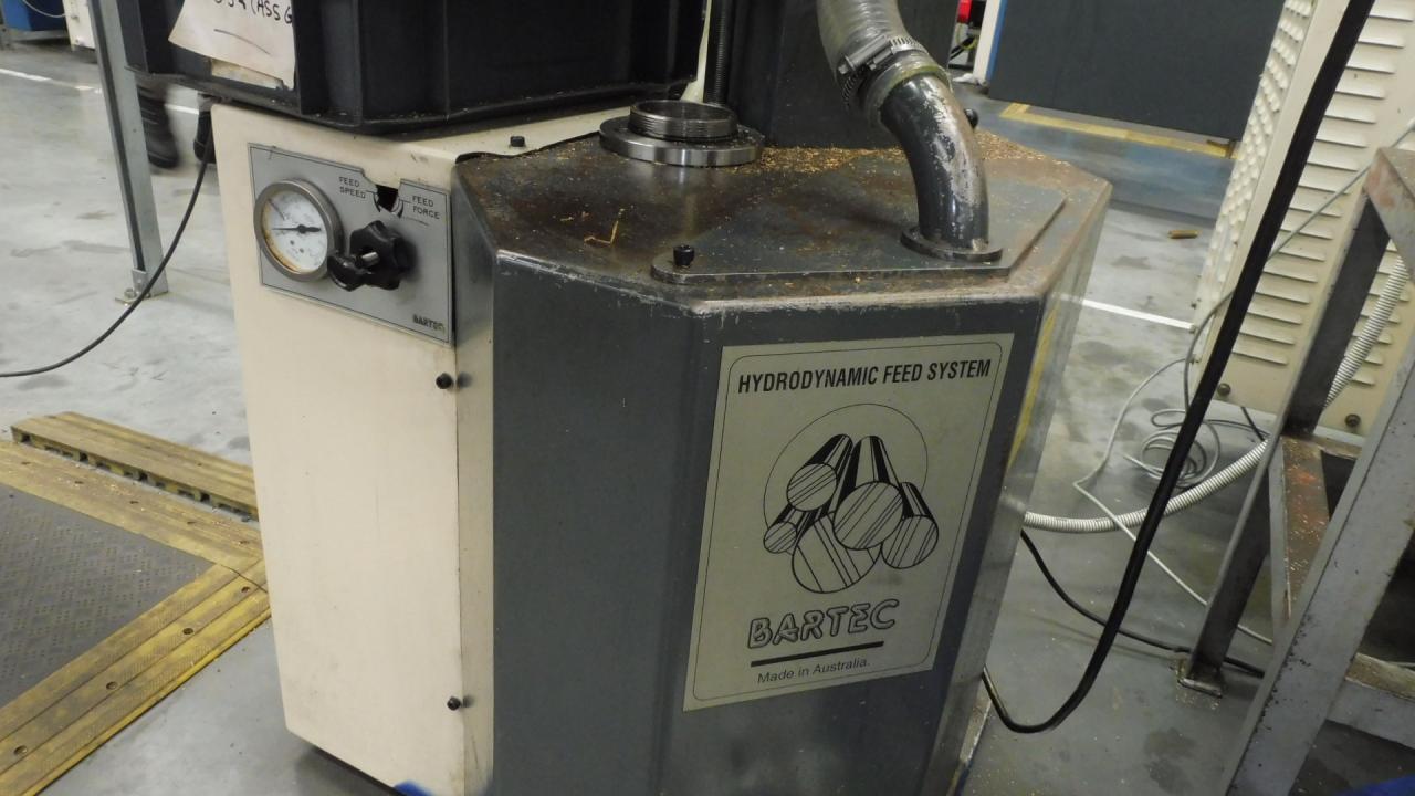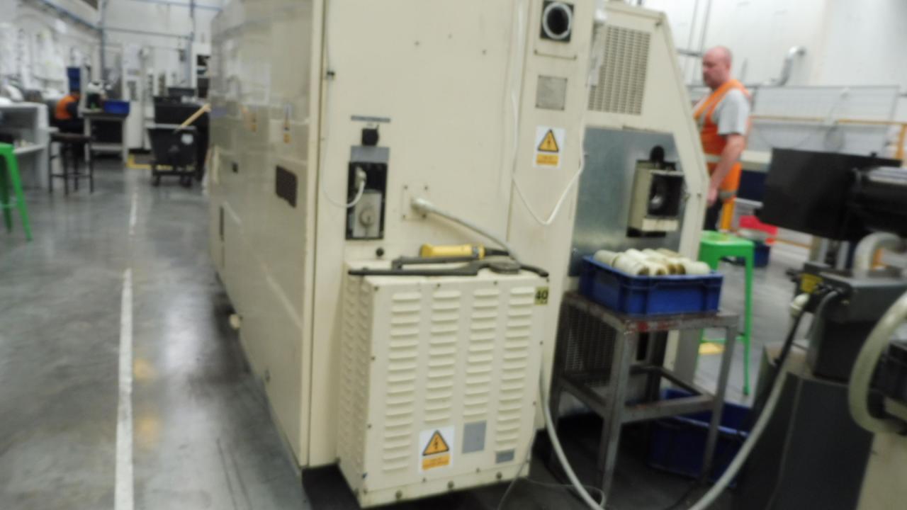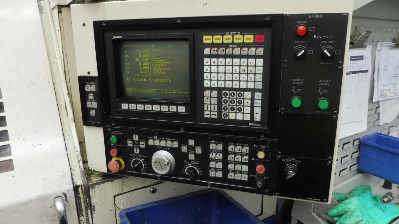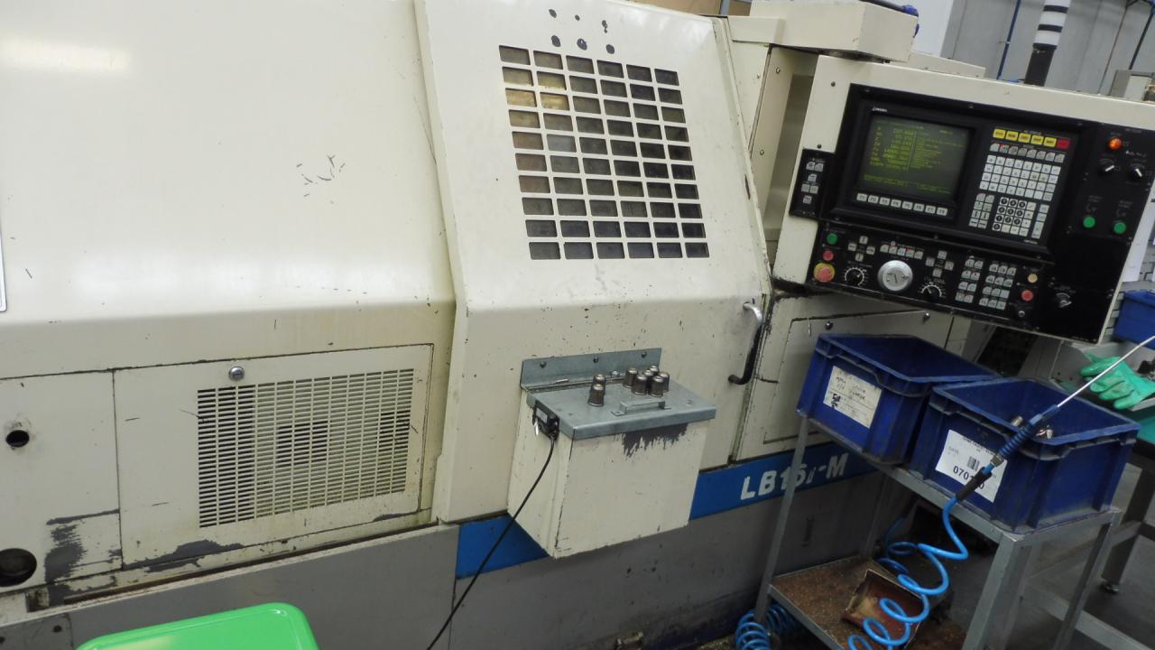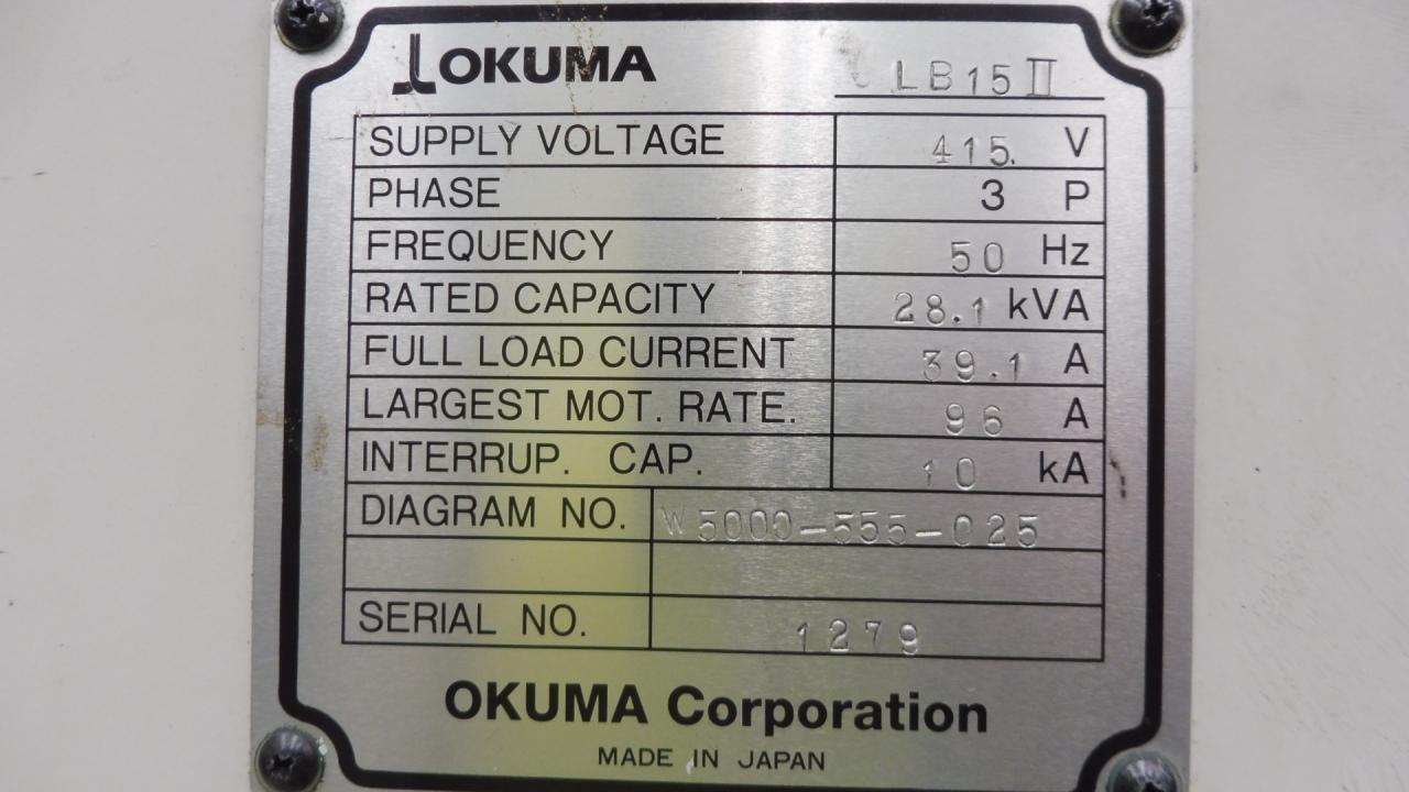 Okuma CNC Lathe model LB15 with Bartec Bar Feeder and Enomoto chip conveyor ( bar feeder is faulty and needs attention ) Serial No;1279; phase 3; 50 hz; Rated capacity; 28.1 KVA; full load current 39.1A; Largest motor rate 96A.