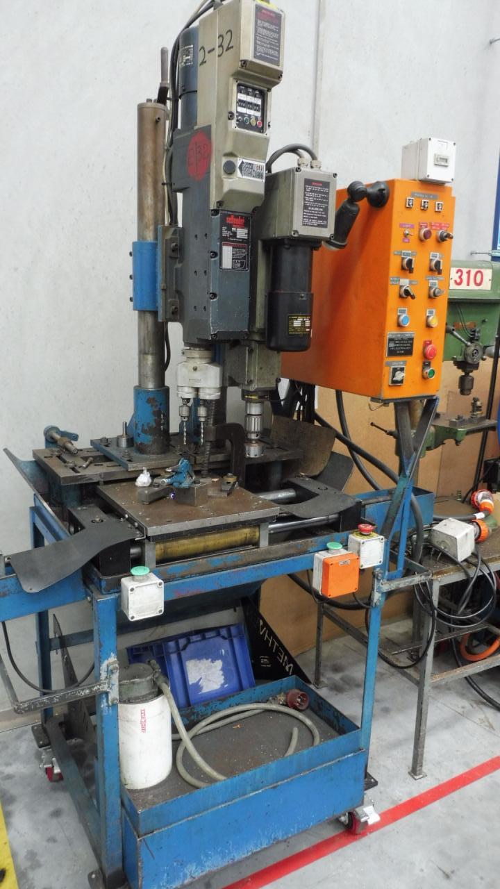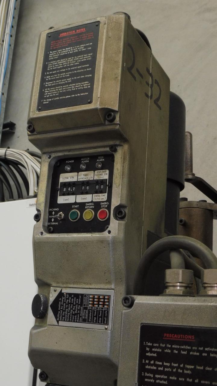 Sugino Drilling and Tapping Machine. Self feeder model MSPU 1000/1200 rpm. Stroke max 99.9mm; chucking capacity 13mm.Tapping system/clamping system; 3 phase,1.1 kw motor,20 amp, 5 pin plug. This unit is on castors.