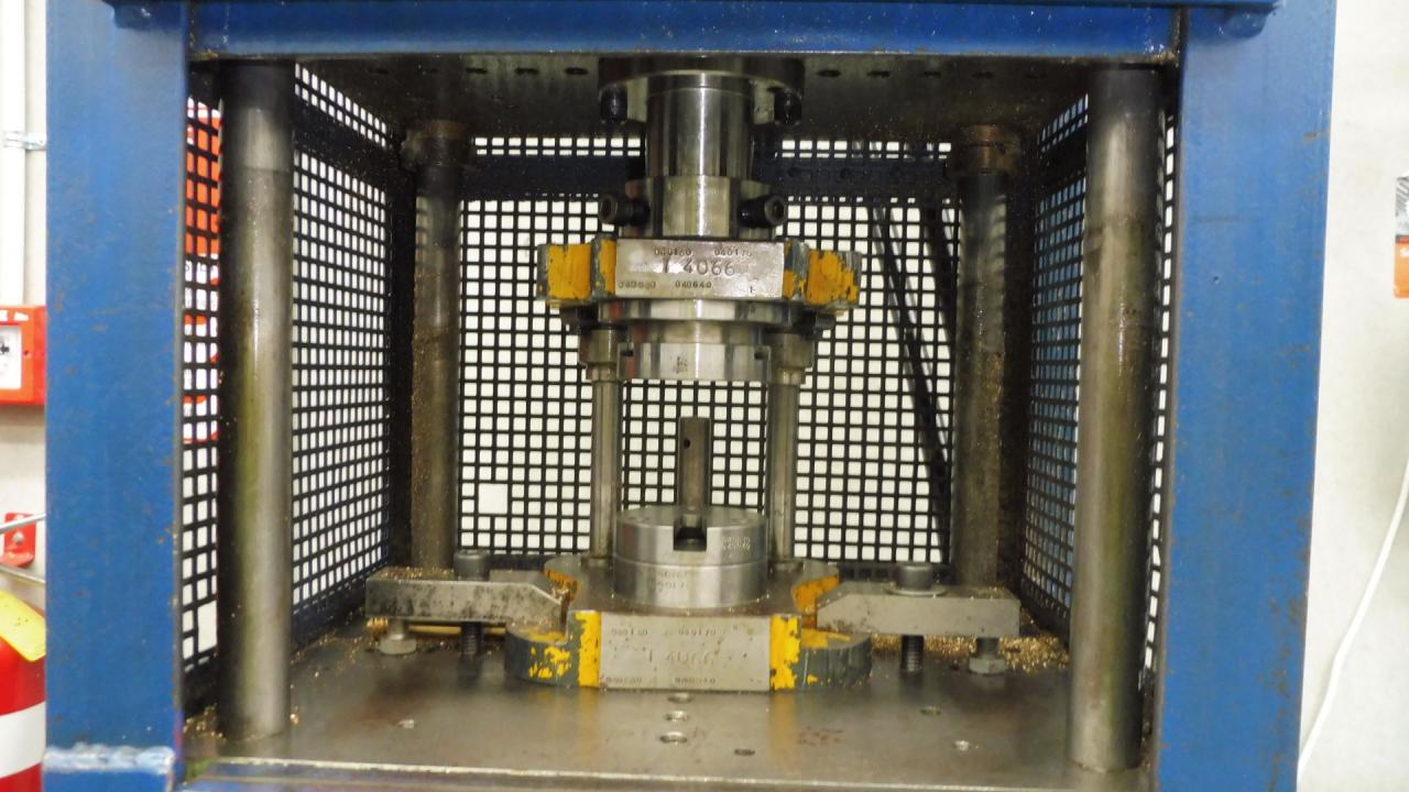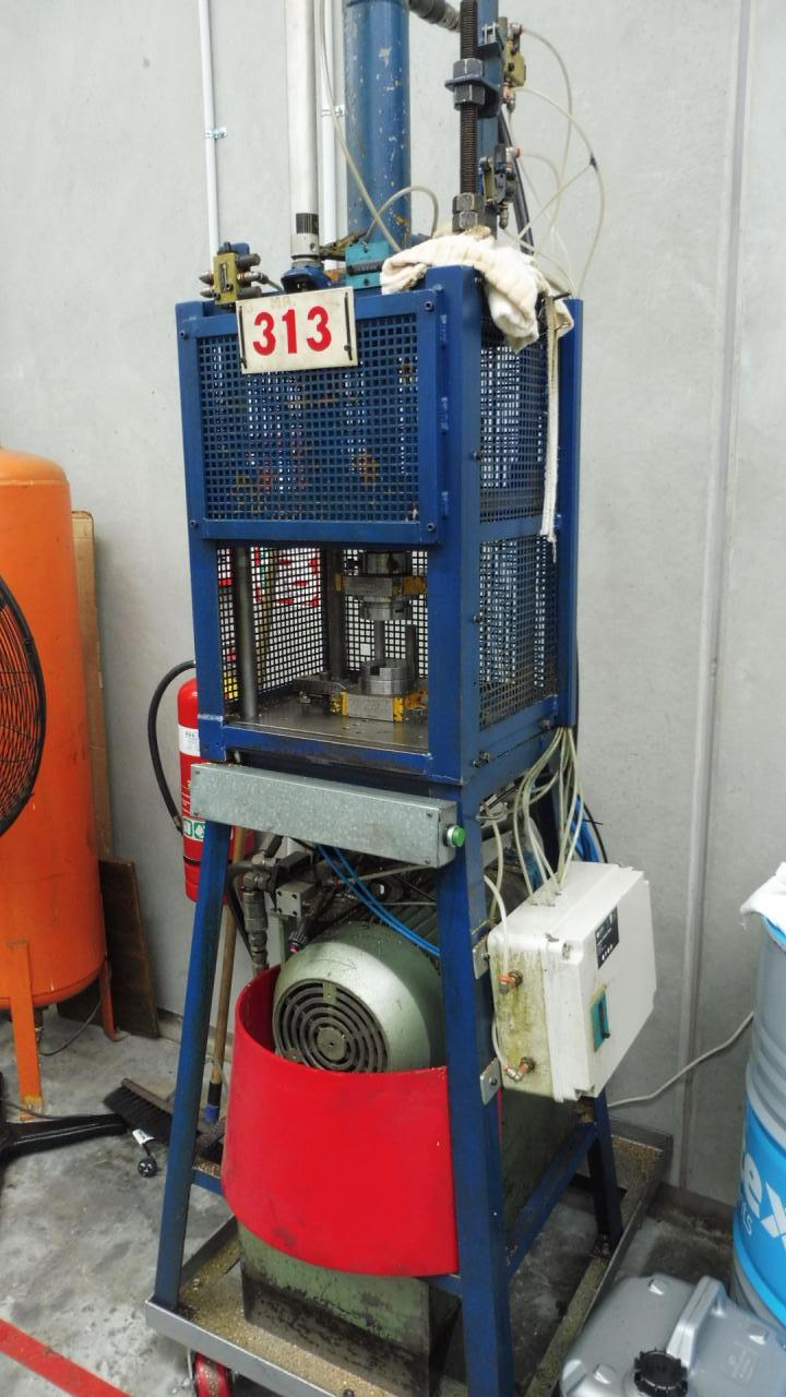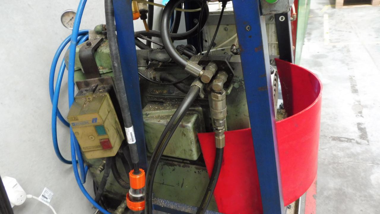 Hydraulic Press complete with Vickers hydraulic power pack 10 hp. Ram spear diameter 40mm approx; 3phase ; 4 pin plug. Comes on trolley.