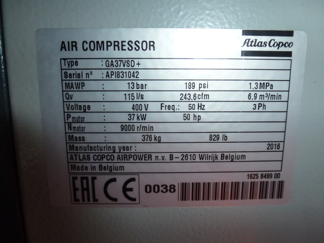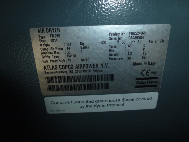 * Air Dryer Model FD 245; Year 2014. Comp Air Pmax 14 bar.