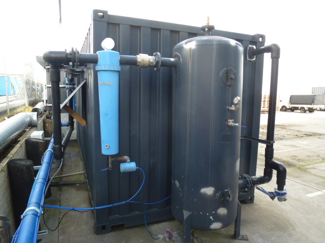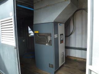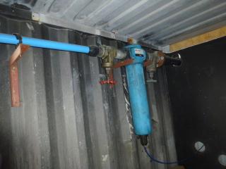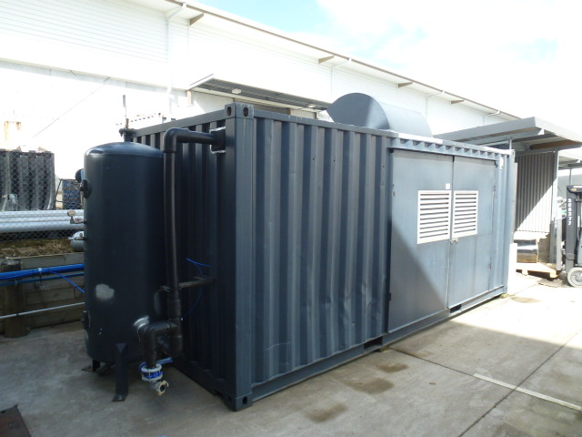 * Air Receiver, Cylinder Dimensions 1900mm (h) x 800mm (d) mounted on external end of shipping container.