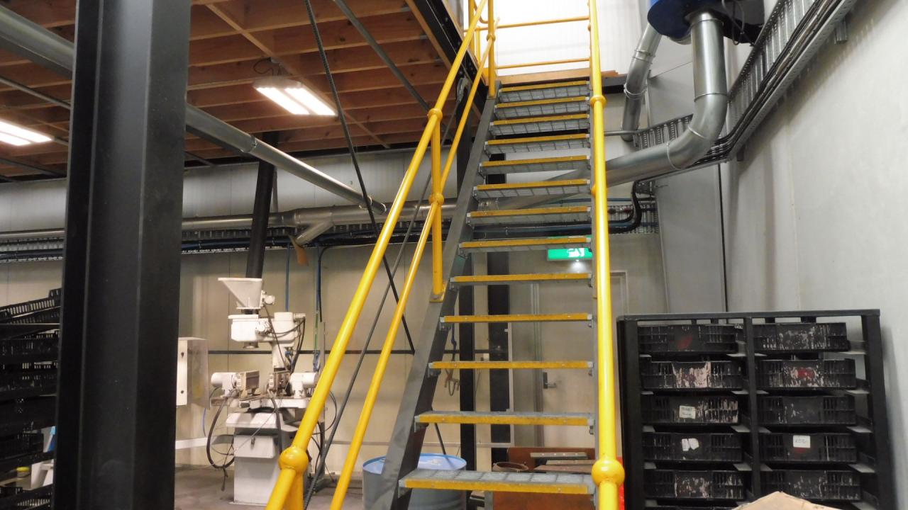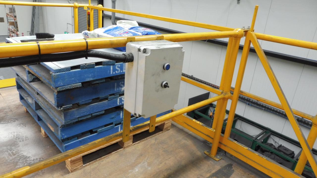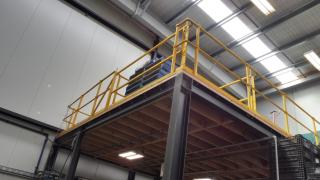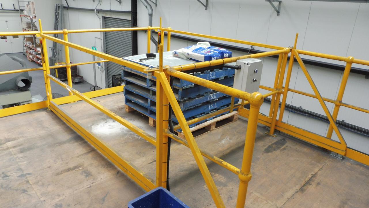 Mezzanine Floor and Support Structure. Complete with Safety Railing . The frame is bolted together.