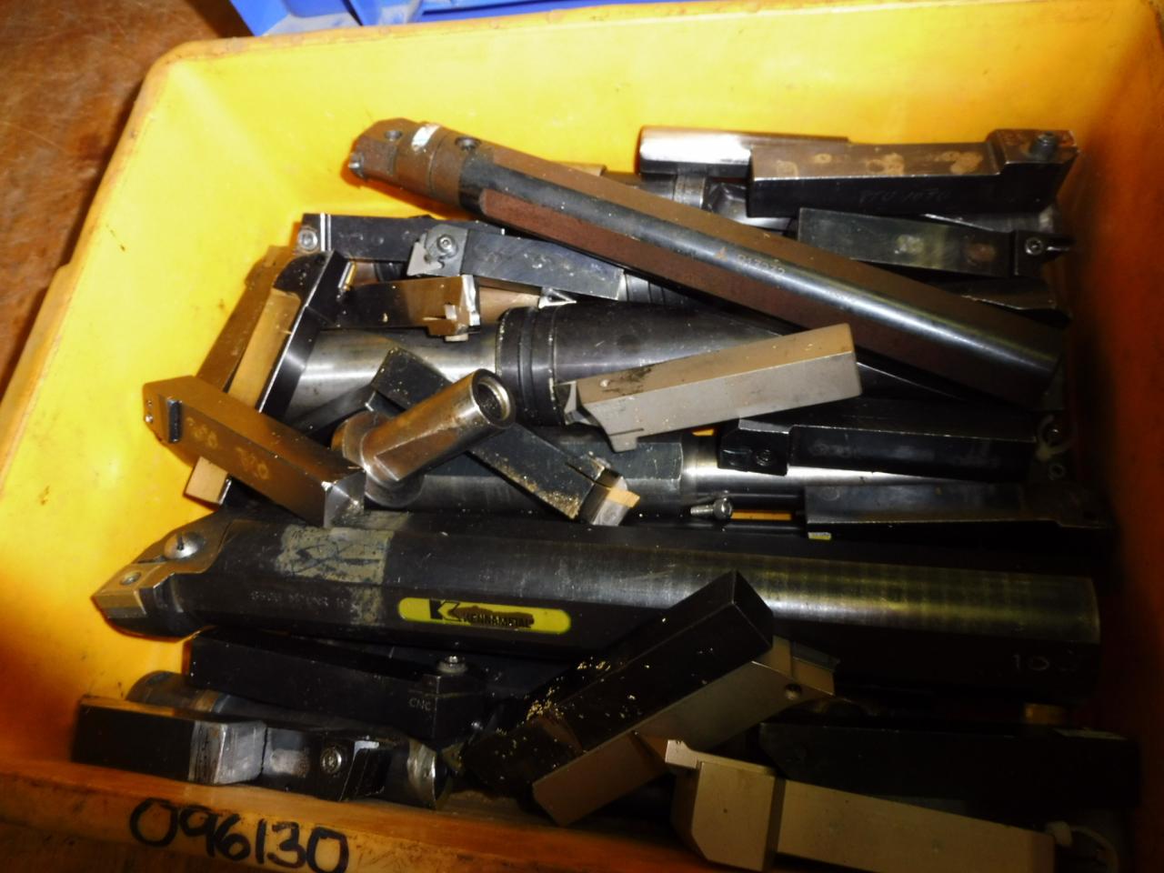 Bin of Assorted Tool Holders. Boring, turning etc. Brands Iscar, Kennametal.