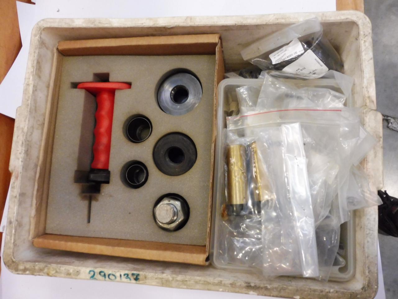 Bin Of Engineering Tools. 1 x Maun Wad Punch. Assorted burnishing roller spares.
