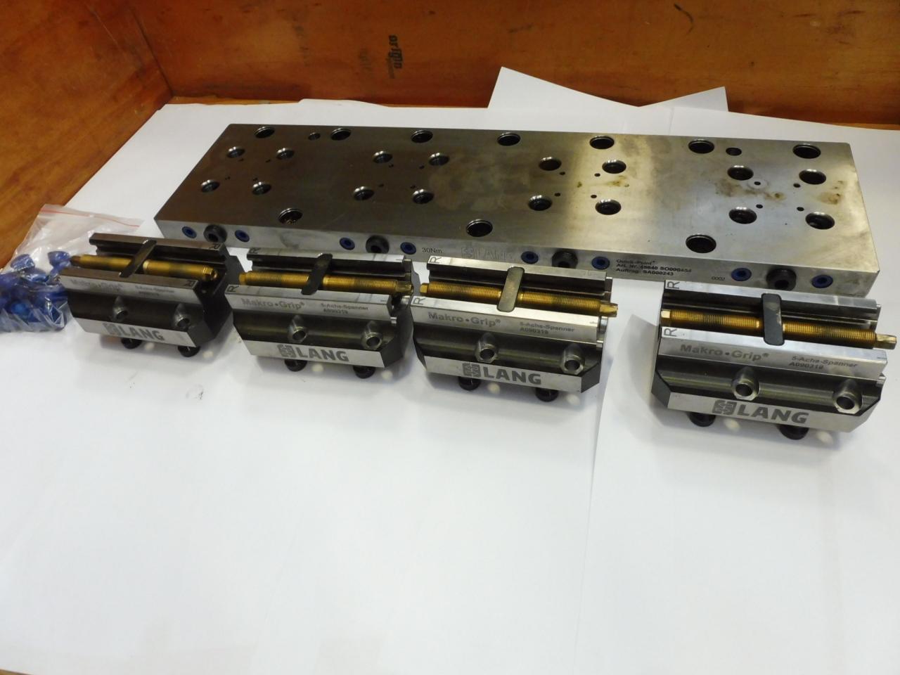 Makro Grip Vices with quick release Clamping Plates . Brand Lang. 4 x Vices, 1 x Plate. Plate size-560mm x 150mm x 27mm.