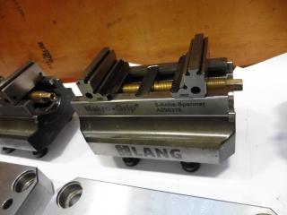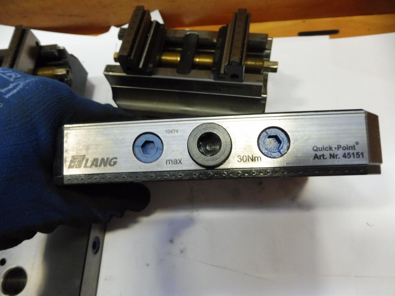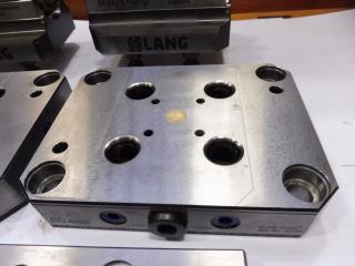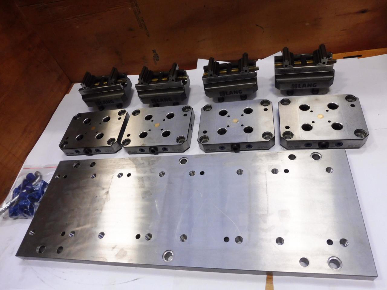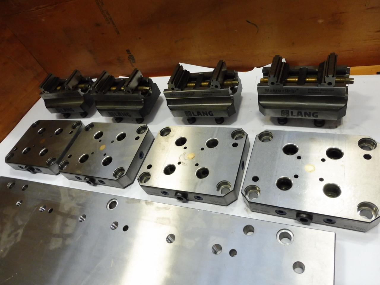 Brand Lang. 4 x Vices, 1 x Plate. Plate size-580mm x 210mm x 20mm. 4 x Mounting Plates, Plate size-150mm x 115mm x 27mm approx.