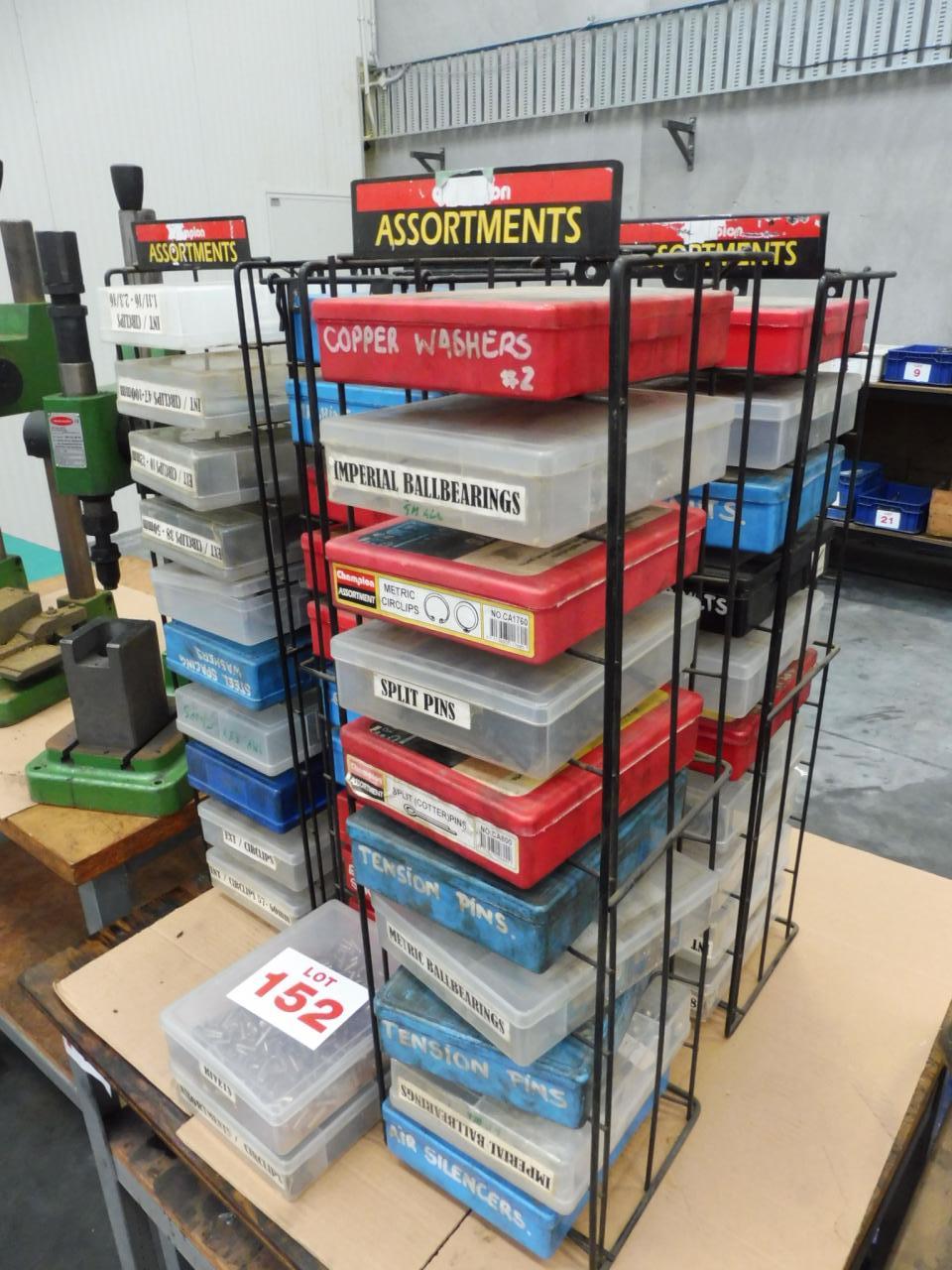 42 x Engineers Consumables in plastic bins. Machine screws, washers, circlips, nuts bolts , tension springs etc .