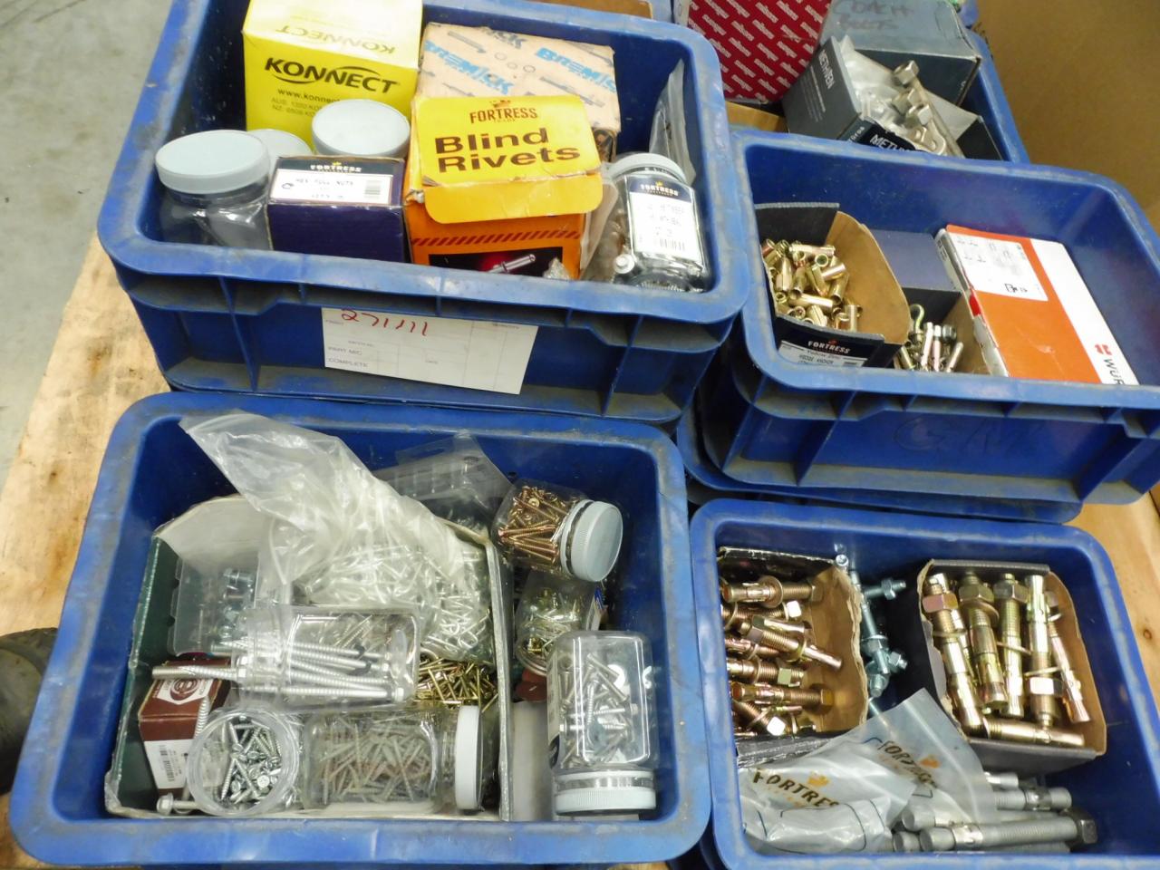 Pallet of Assorted Fastenings. Stainless bolts, rivets, nuts bolts, screws , nails, etc.