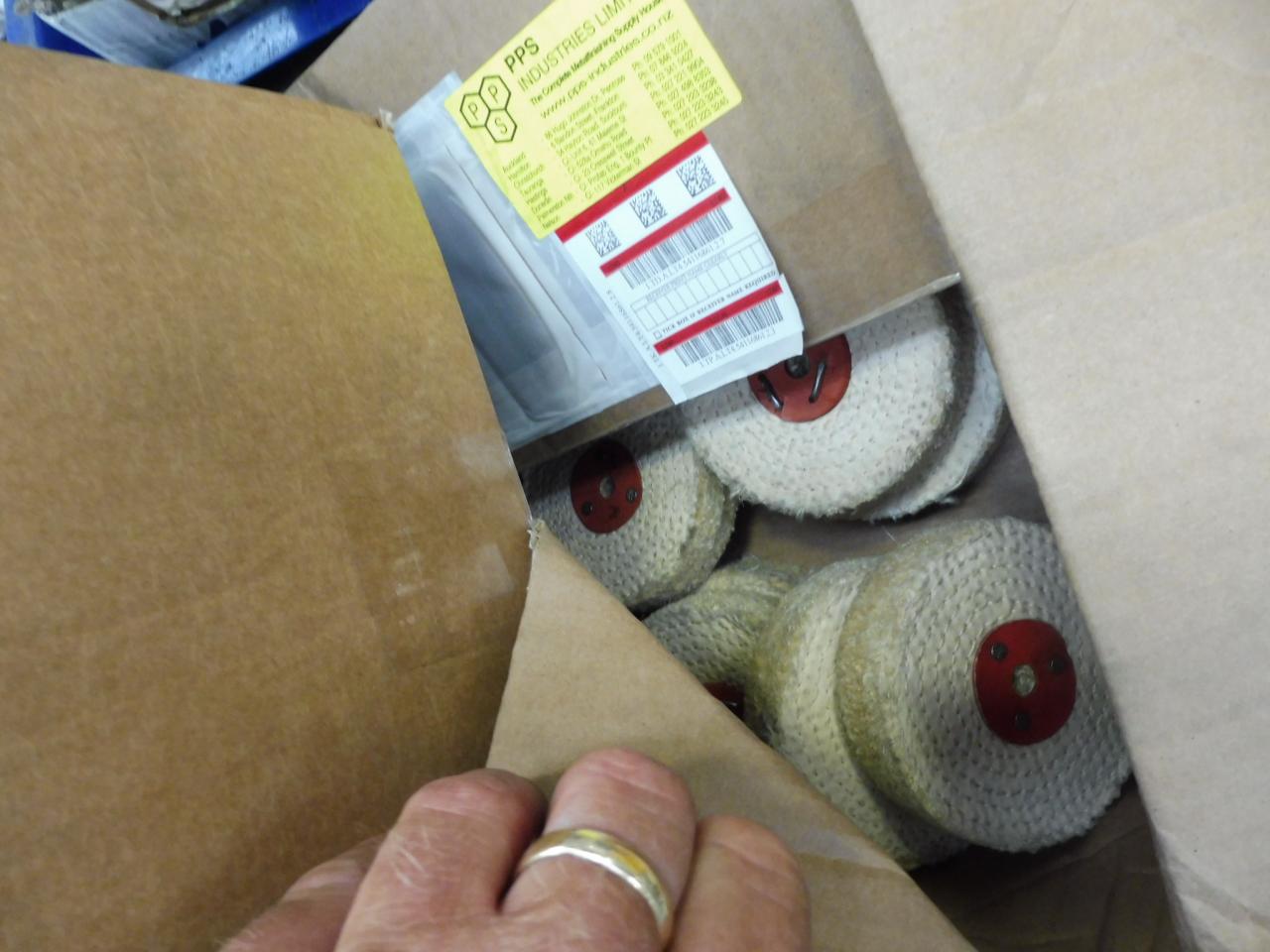 Pallet Of Polishing Equipment. Mops, PPS Industries Assorted Size Wheels, Polishing Soap. Big Lot.